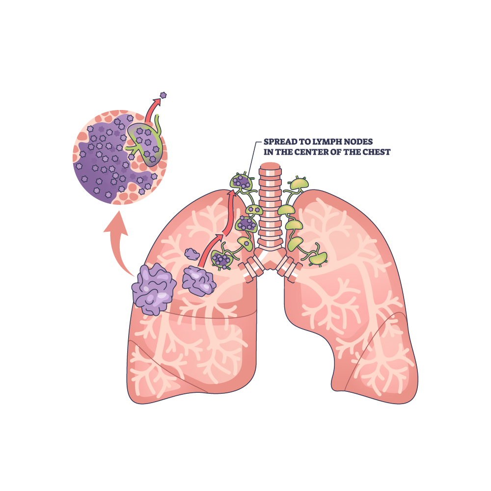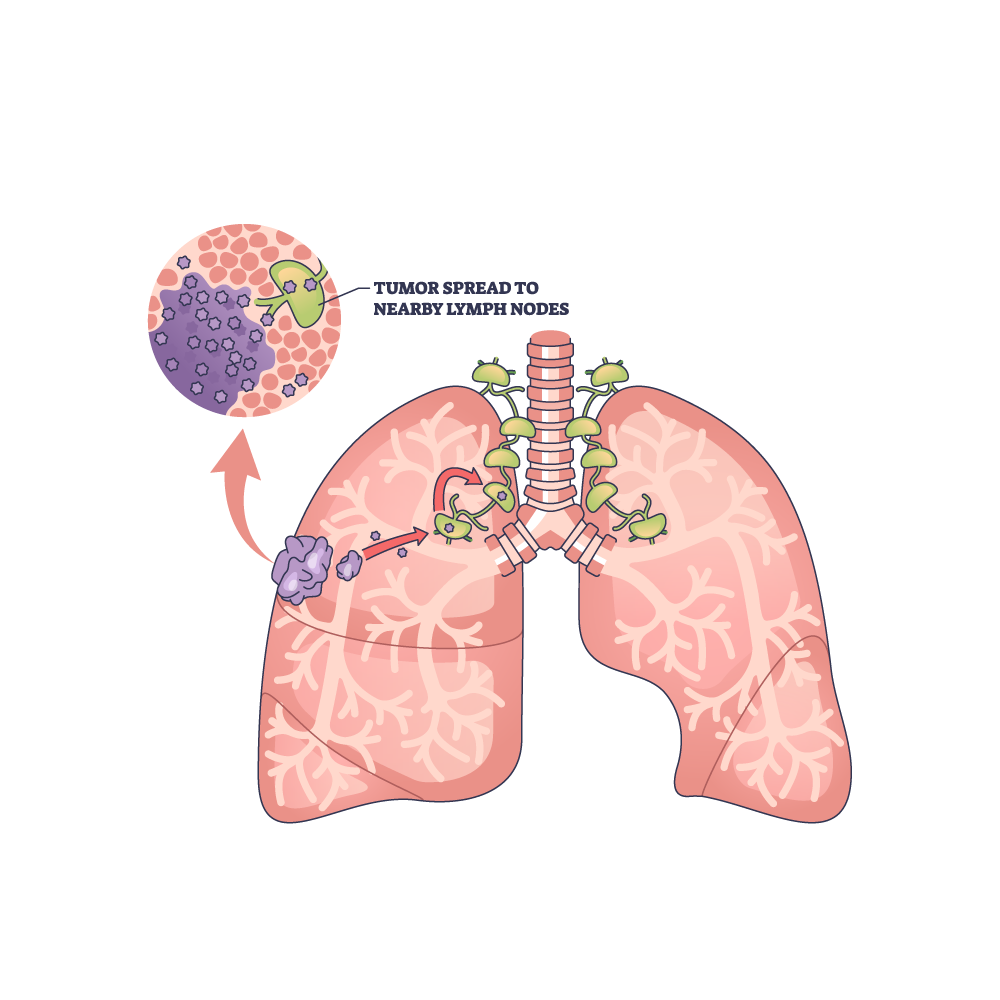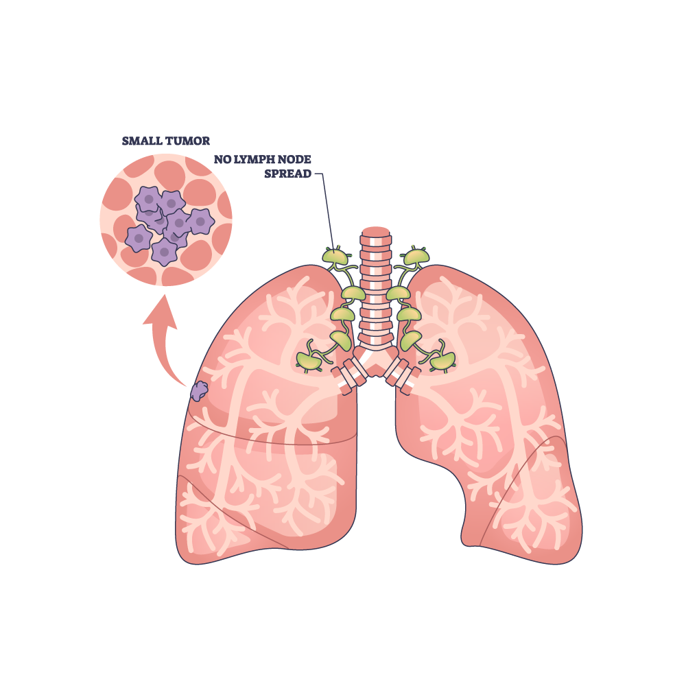 Lung cancer staging helps determine how far the cancer has spread and guides treatment planning. Doctors use the TNM system to describe the cancer: